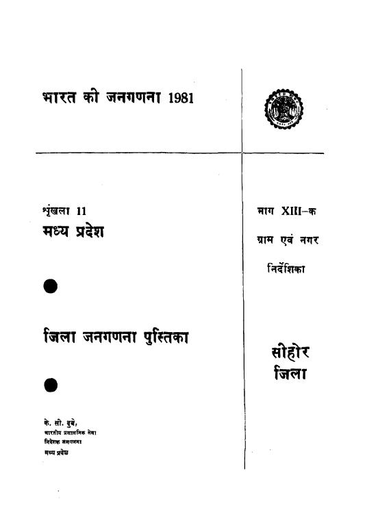 District Census Handbook, Sehore, Part XIII-A, Series-11 - Census 1981