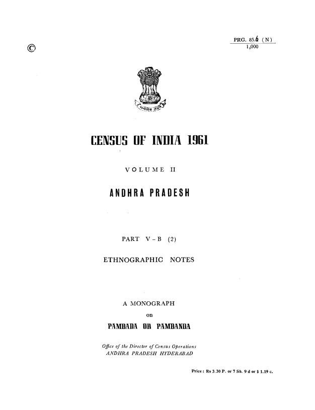 Ethnographic Notes, A Monograph on Pambada or Pambanda, Part V-B (2), Vol-II - Census 1961