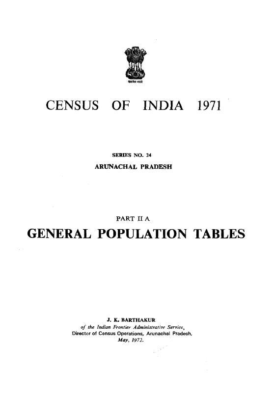 General Population Tables, Part II A, Series 24, Arunachal Pradesh - Census 1971