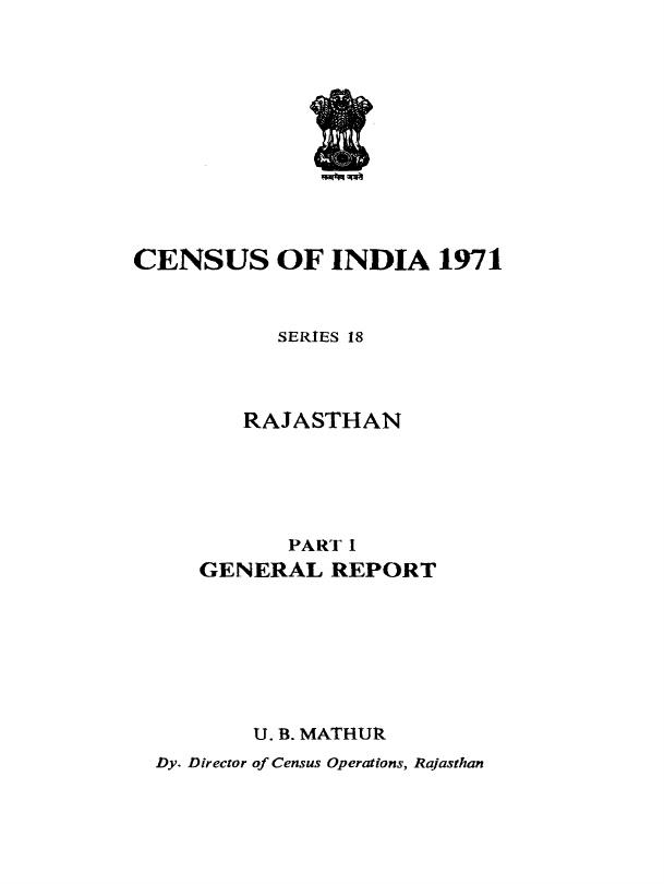 General Report Part I ,Series-18, Rajasthan - Census 1971