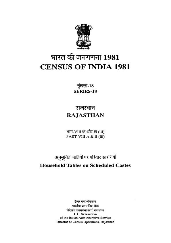 Household Tables on Scheduled Castes, Part VIII A & B, (iii), Series-18, Rajasthan - Census 1981