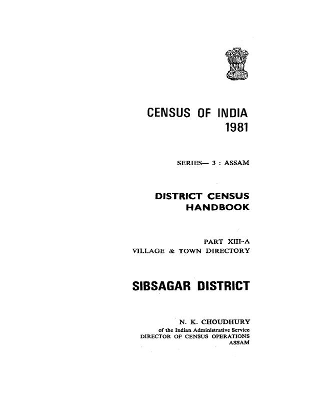 Village & Town Directory, Sibsagar, Part XIII-A, Series-3, Assam - Census 1981