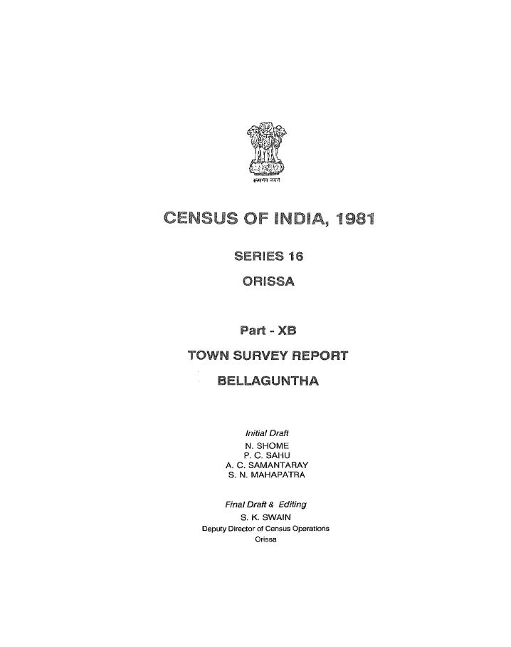 Town Survey Report Bellaguntha, Part-XB, Series-16, Orissa - Census 1981