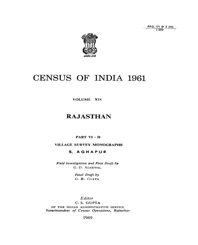 Village Survey Monographs, 5 Aghapur, Part VI-D, Vol-XIV, Rajasthan - Census 1961