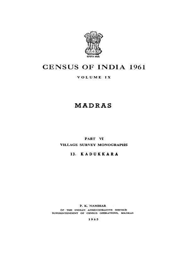 Village Survey Monographs, 13 Kadukkara, Part VI, Vol-IX - Census 1961
