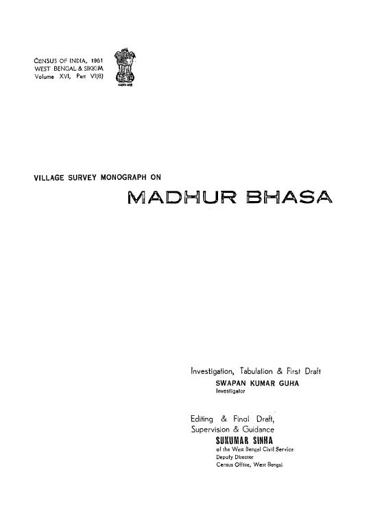 Village Survey Monograph on Madhur Bhasa, Part VI (48, Vol-XVI, West Bengal & Sikkim - Census 1961