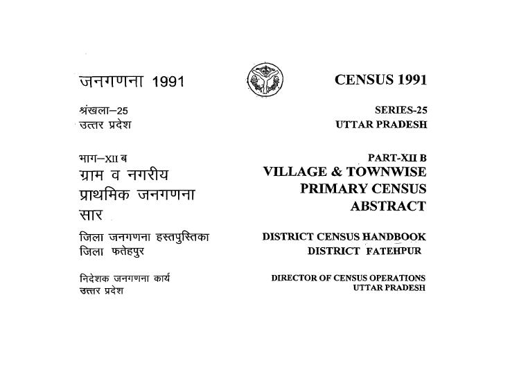 District Census Handbook District, Fatehpur, Part XII-B, Series-25, Uttar Pradesh - Census 1991