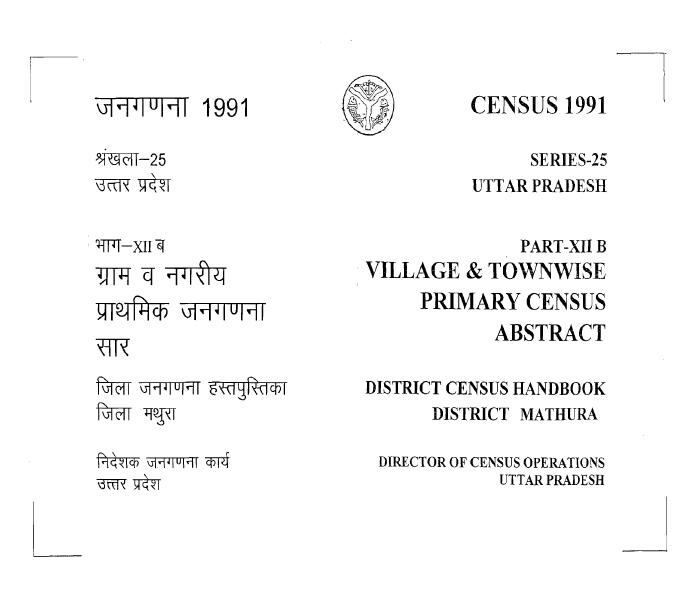 District Census Handbook, Mathura, Part-XII-B, Series-25, Uttar Pradesh - Census 1991