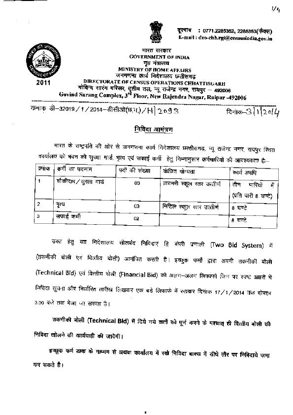Tender for Security Guard / Sweeper [DCO- Chhattisgarh]