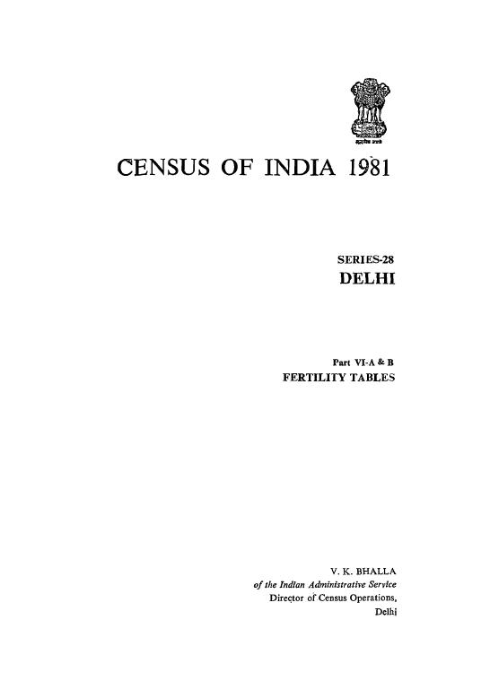 Fertility Tables, Part VI-A & B, Series-28, Delhi - Census 1981