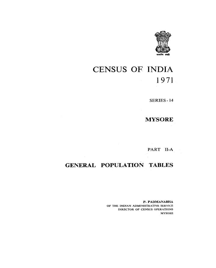 General Population Tables, Part II-A, Series-14,Mysore - Census 1971