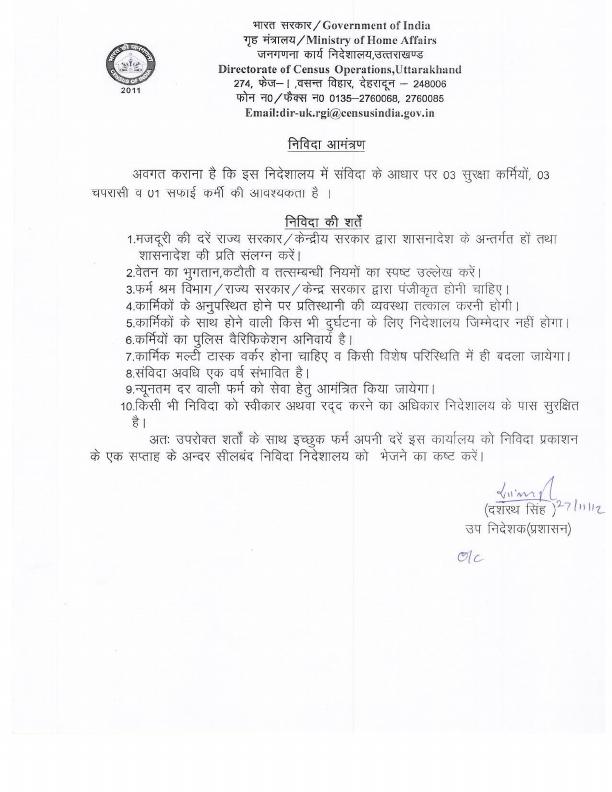 Quotation Notice for the services of 03 Security Gaurds, 03Peons and 01 Safai Karmi (DCO - Uttarakhand)