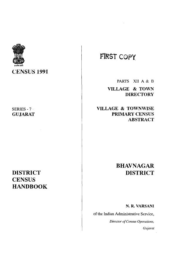 District Census Handbook, Bhavnagar, Part XII A & B, Series-7 - Census 1991