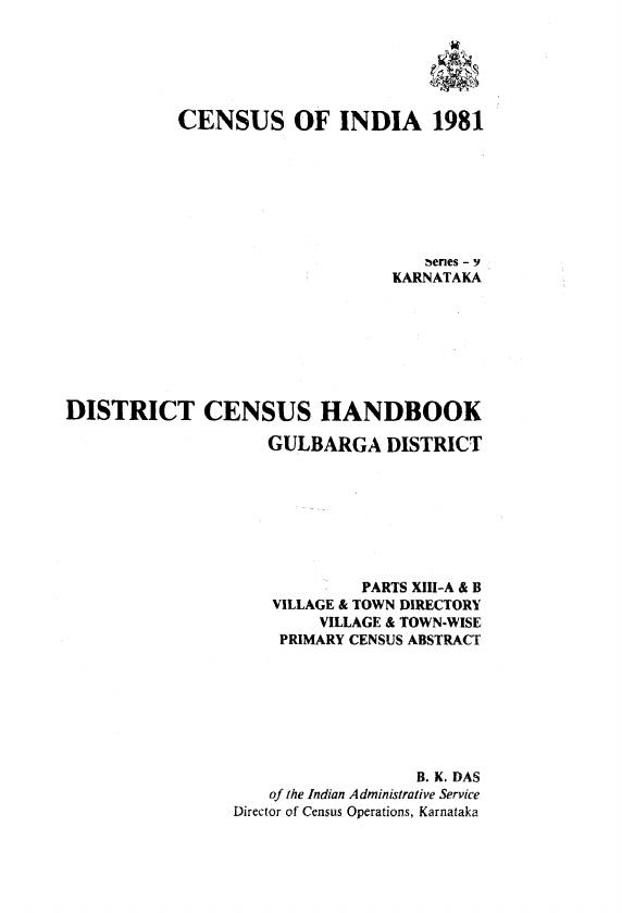 District Census Handbook, Gulbarga, Part XIII-A & B, Series-9 - Census 1981
