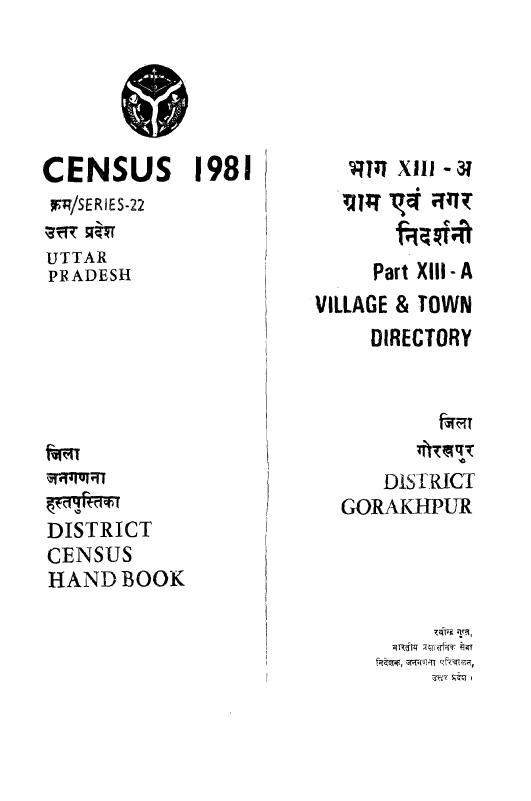 District Census Handbook, Gorakhpur, Part XIII-A, Series-22, Uttar Pradesh - Census 1981