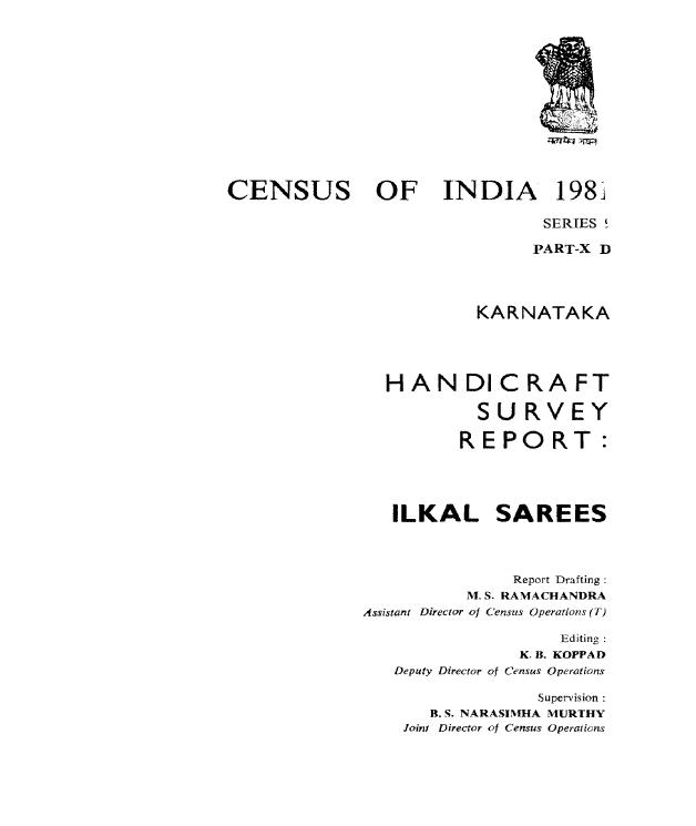 Handicraft Survey Report, Ilkal Sarees, Part X-D, Series-9 - Census 1981