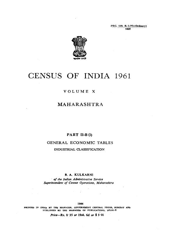 General Economic Tables Industrial Classification, Part II-B (i), Vol-X - Census 1961