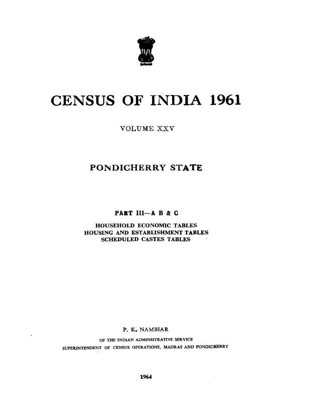 Household Economic Tables Housing and Establishment Tables Scheduled Castes Tables, Part III-A B & C, Vol-XXV - Census 1961