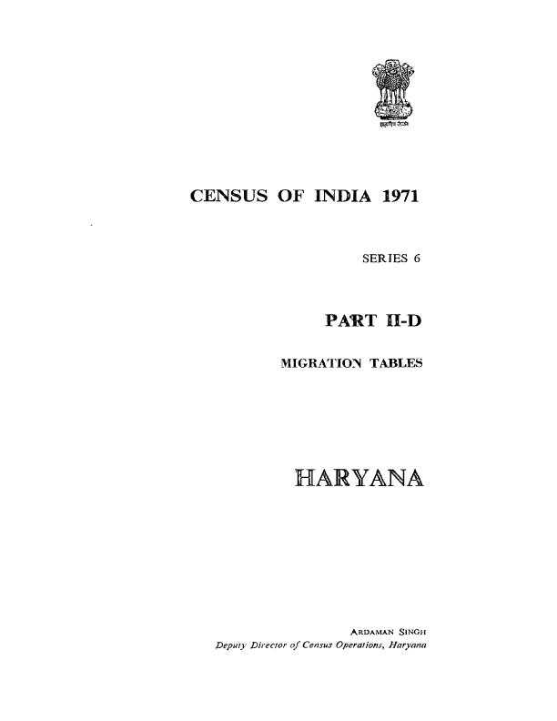 Migration Tables, Part II-D, Series-6, Haryana - Census 1971